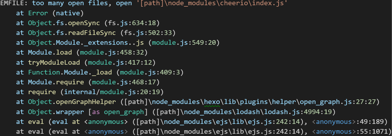 EMFILE: too many open files, open '[path]\node_modules\cheerio\index.js'