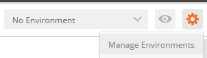 1. In Postman, click the Manage Environments option under the gears icon in the upper right.