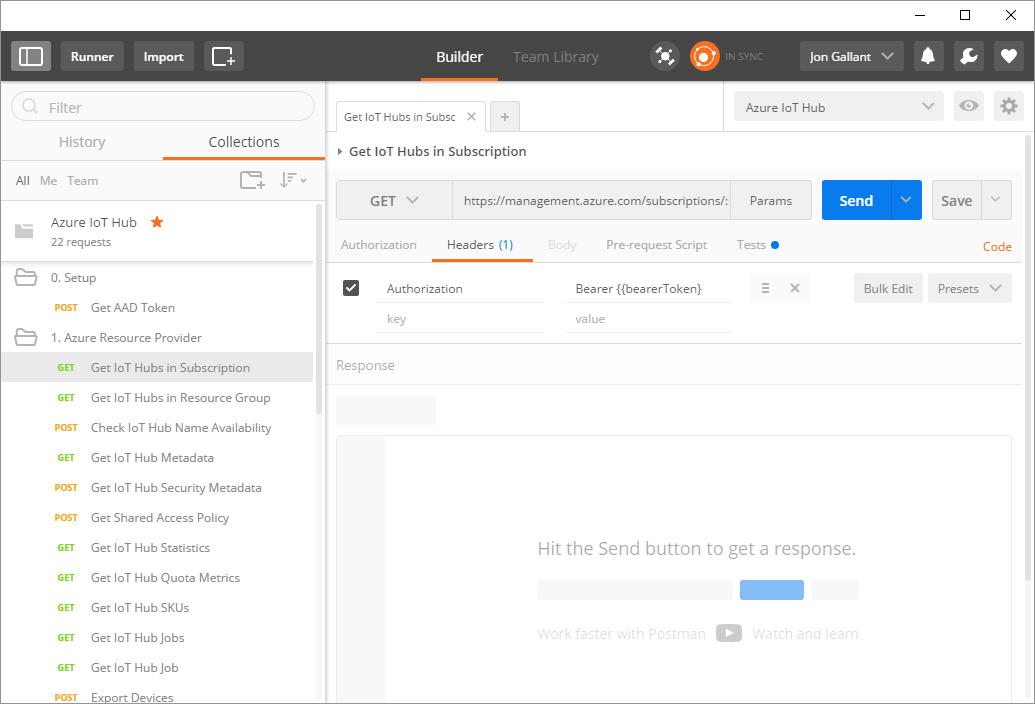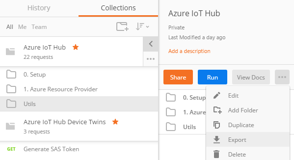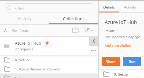 There’s a chance you will get errors when running these, especially the Export/Import Device requests. I’m following up with the Azure IoT team on this. If you do run into this issue, just run again or try again after some time.