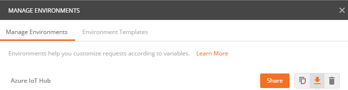 1. Select the Environment that you create earlier, you may have called it Azure IoT Hub