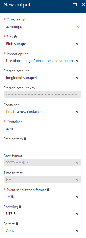 For this contrived exercise, we’re going to configure a Blob Storage account that ASA sends all messages to. Let’s create the account and then wire up ASA.