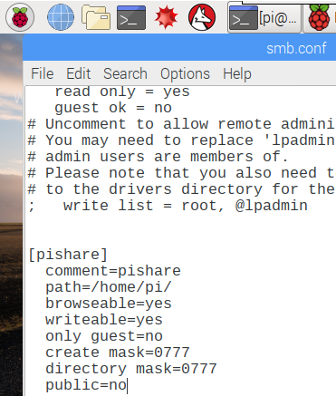 sudo nano /etc/samba/smb.conf