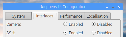 - Click ‘Interfaces’ and Enable SSH, Click OK