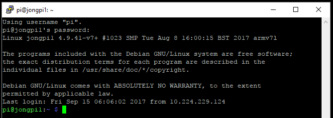 You will now be connected to your Pi over SSH.