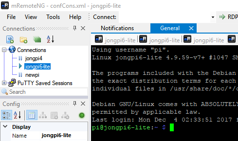 You have a bunch of different options for connecting to your Pi over SSH. I’ve used Putty for a while, but have switched to mRemoteNG because it helps me manage many SSH windows and different device configurations in a tabbed environment.