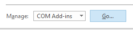 1. File -> Options -> Add-ins -> Manage COM Add-ins -> Go
