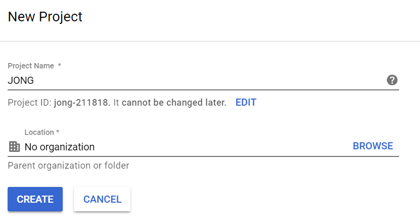 - Enter Project Name, Click Create