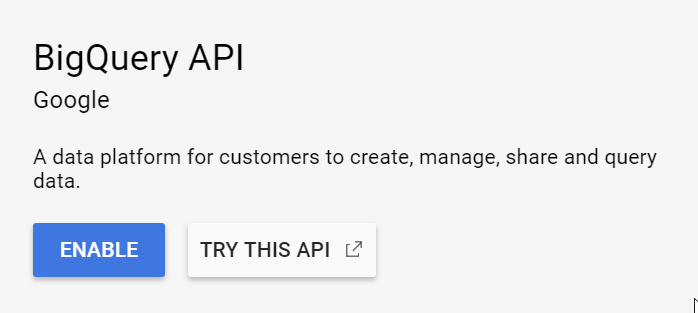 - Click on BigQuery API