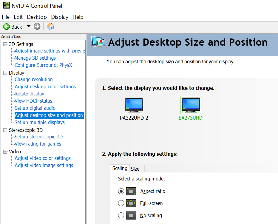 My main monitor is a NEC PA322UHD and my secondary is a NEC EA275UHD. I set them both up on a new computer with a NVIDIA GeForce 745, the PA322 on DisplayPort and the EA275 on HDMI.