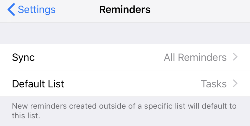 - List Name = Tasks (which is the same as the iOS Reminder default reminder list in iOS Settings->Reminders)