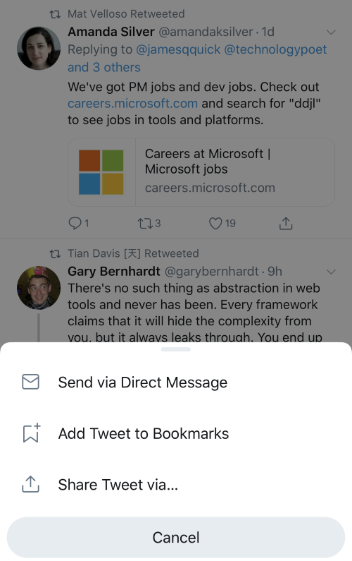 - Select “Share Tweet via…”