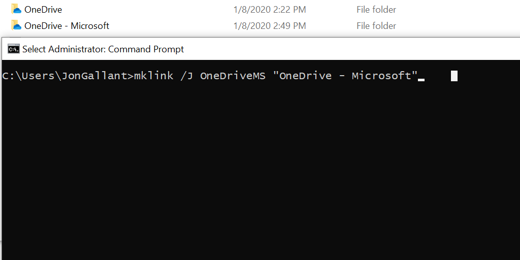 - Navigate to the parent folder of your current OneDrive folder, mine was c:\Users\JonGallant\