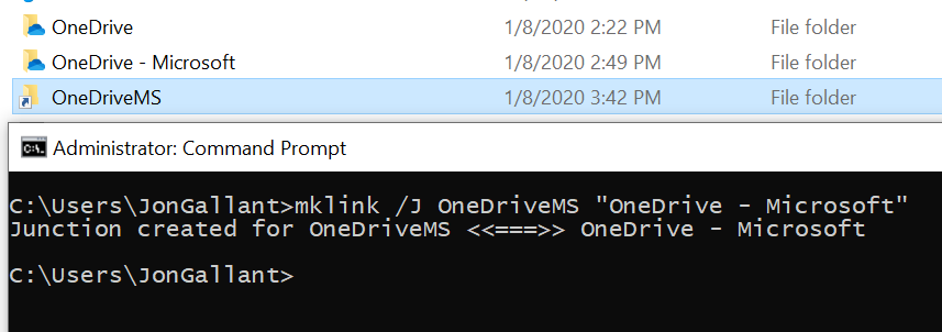 mklink /J OneDriveMS "OneDrive - Microsoft"