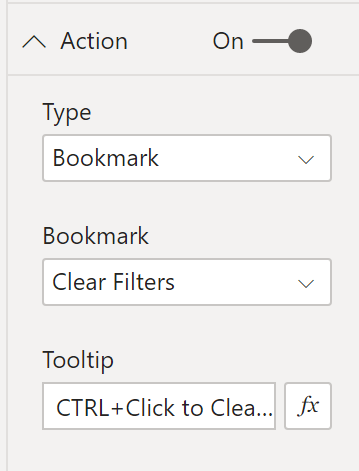 - Give it a tooltip. I entered CTRL+Click to Clear Filters. Because users might not know they need to click CTRL.