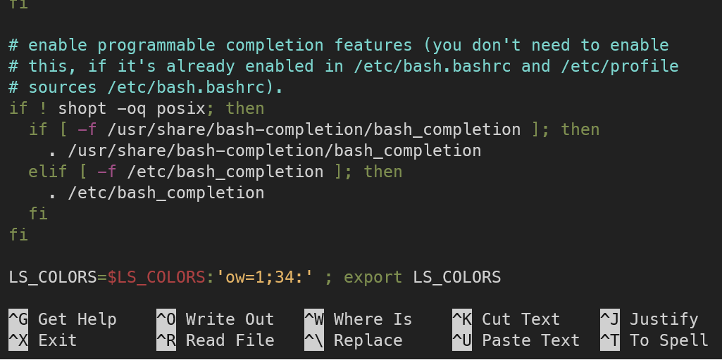 LS_COLORS=$LS_COLORS:'ow=1;34:' ; export LS_COLORS