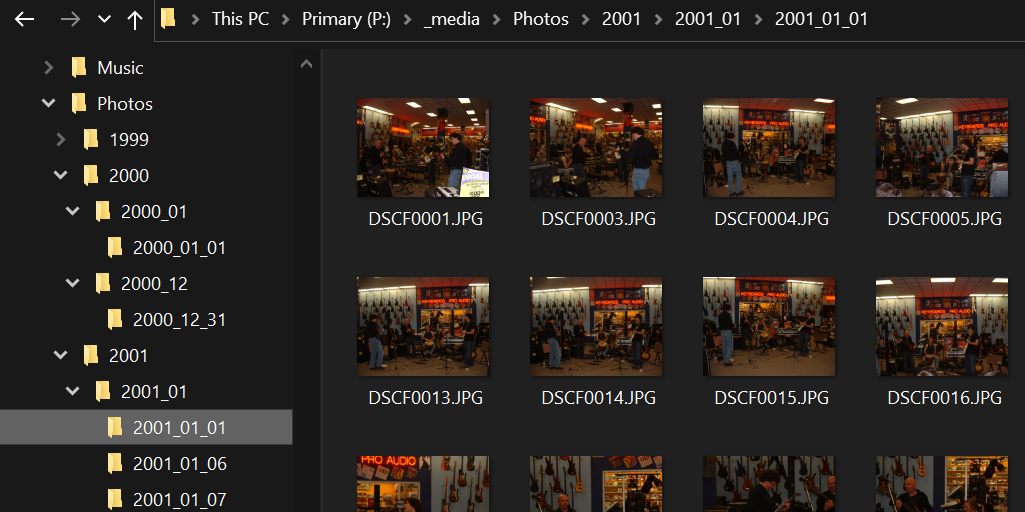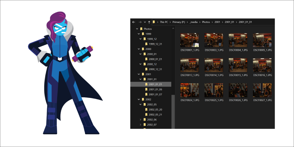 I recently decided to organize all of my photos from the last 20 years. Photos from various phones and cameras - all with many different formats, JPEG, RAW, PNG, etc. They were all stored on my hard drive, but in random folders with random names. I wanted to get them organized in folders by date taken like so: