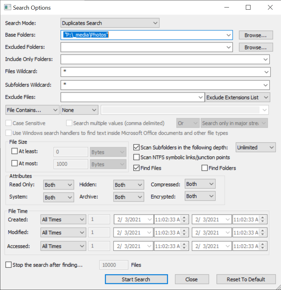 I also researched a bunch of options to remove duplicate files based on the file content (i.e. same photo with a different name) and decided to use “SearchMyFiles” from NirSoft instead of create my own script.