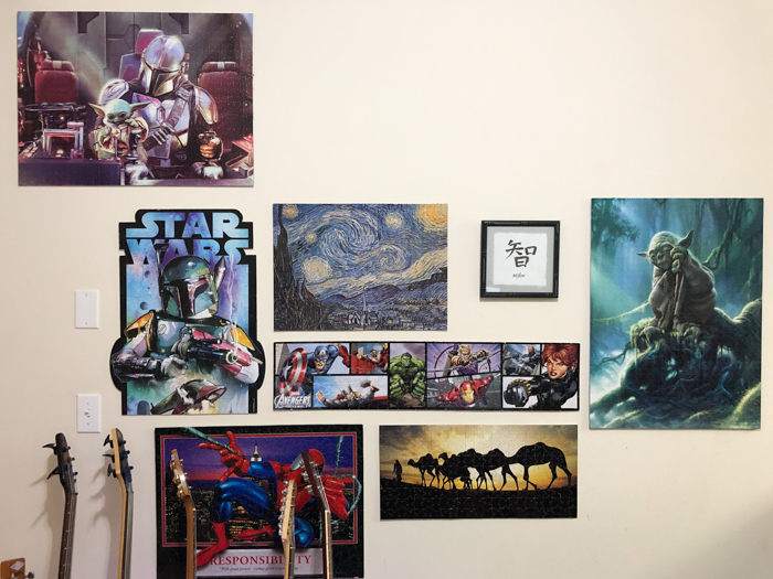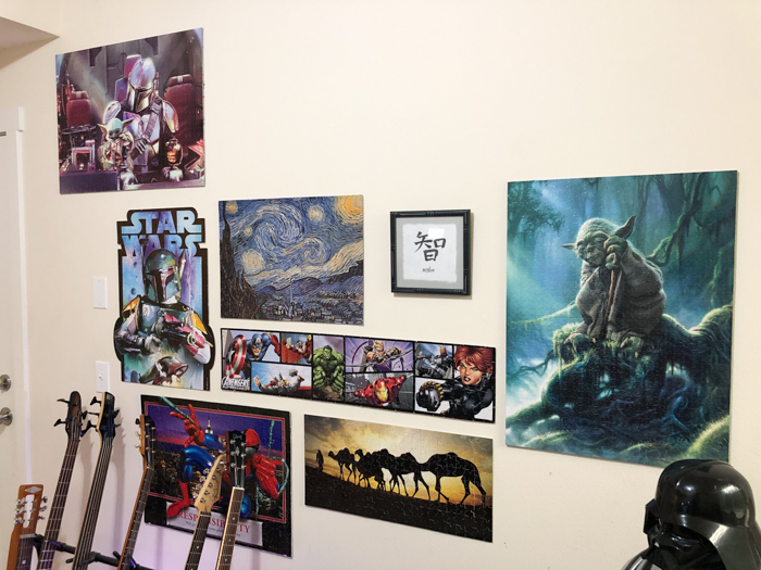 We are a puzzle family and a few years ago started hanging them up around the house. We are also a Star Wars family and started doing Star Wars themed puzzles. My office wall now has many puzzles that we’ve completed and we call it the puzzle wall.